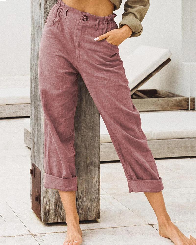 | Product Name | Solid Cotton Linen Loose High Waist Casual Pants |